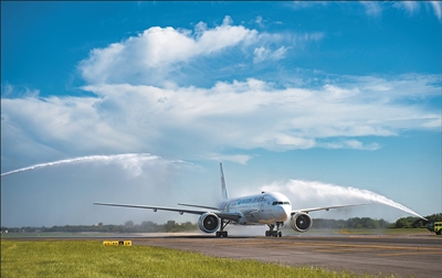 12月4日,中国东方航空公司MU745航班抵达埃塞萨国际机场后通过“水门”。 |