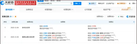 此前,白山宏胜饮料有限公司早在9日也已发生工商变更,祝丽丹卸任法定代表人及总经理,由许思敏接任。